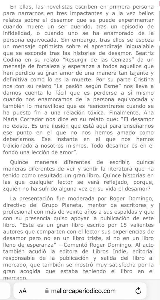 Os dejo el enlace de la publicación que ha hecho Iberian Press sobre mi novela y la convocatoria a la hora de firmas en la Feria del Libro de Madrid. Apenas quedan dos días y estoy muy emocionada por vivir esta bonita experiencia. Ya os contaré a la vuelta qué tal ha ido 🙂